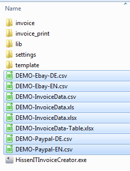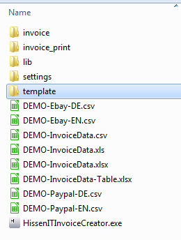 Die Ordnerstruktur von InvoiceCreator sieht wie folgt aus: